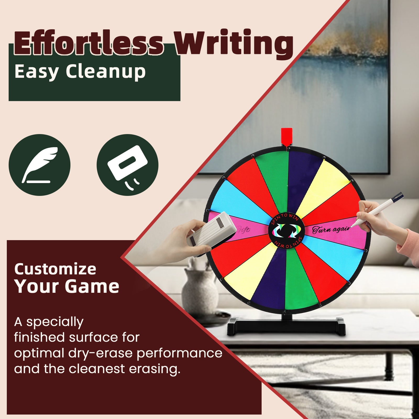 18" Tabletop Prize Wheel – 14 Slots, Durable Base, Dry Erase Spinner for Parties, Carnivals & Trade Shows