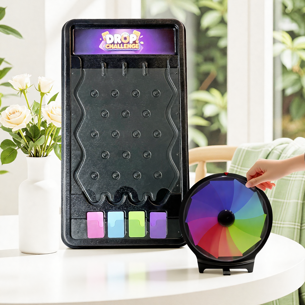 2-in-1 Prize Wheel & Plinko Board Set – 10" Tabletop Spinner + 14" Drop Game for Trade Shows, Parties & Family Fun