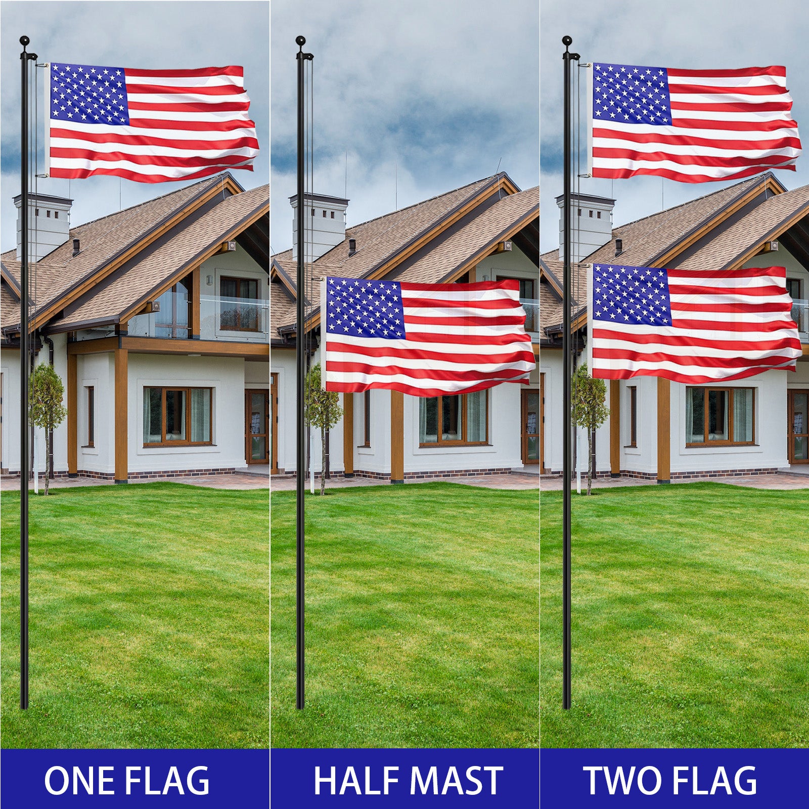 20FT Heavy Duty Black Aluminum Flag Pole – 2.0mm Thick with 3×5' Embroidered Flag