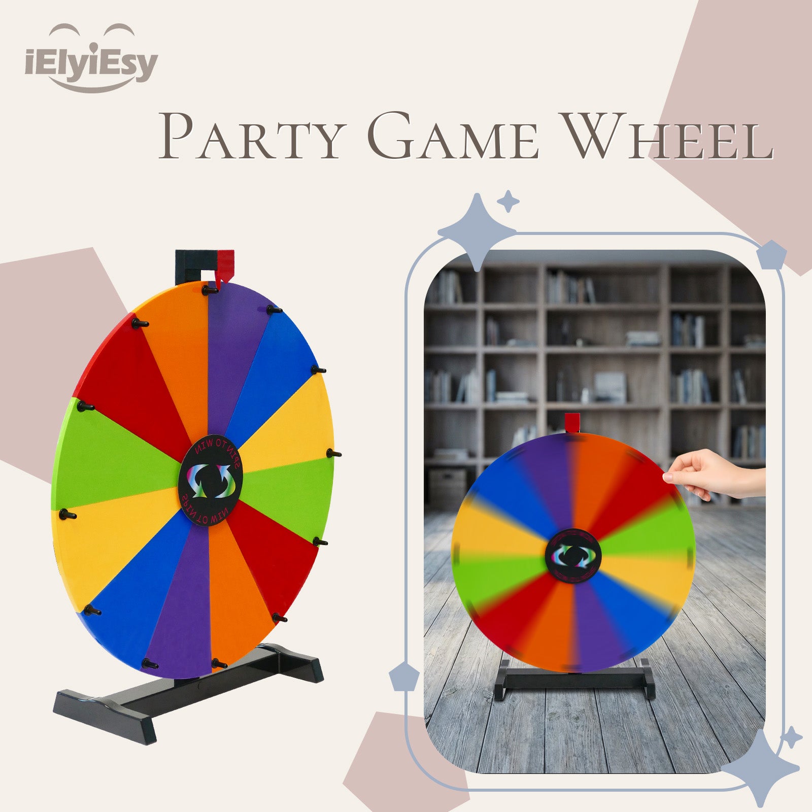 24" Spinning Prize Wheel – 12-Slot Detachable Fortune Wheel with Stand for Party, Carnival & Events